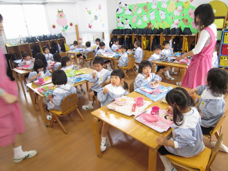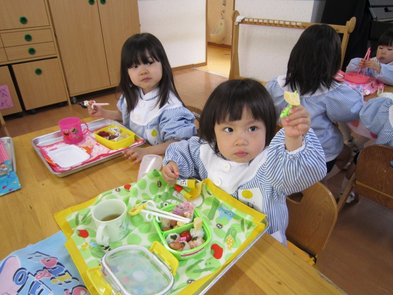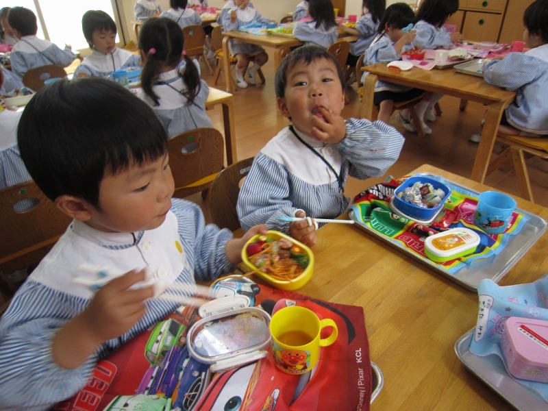 年少組さんにとっては、幼稚園生活初めてのお弁当!ドキドキワクワクですね!