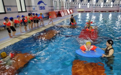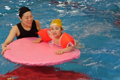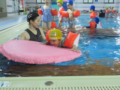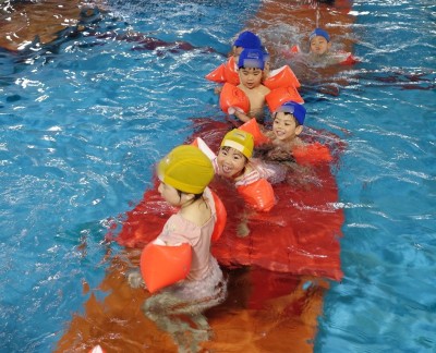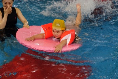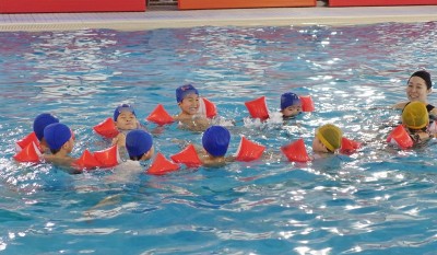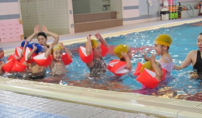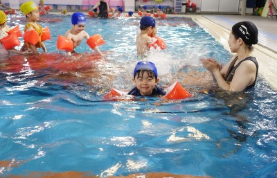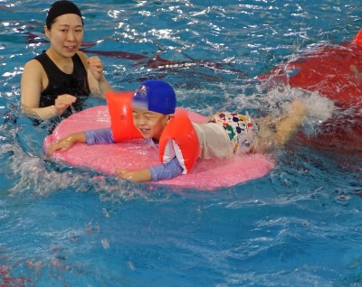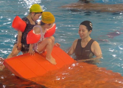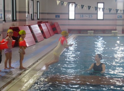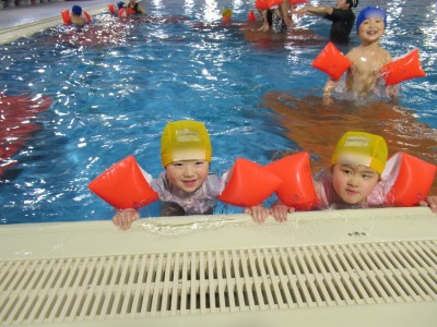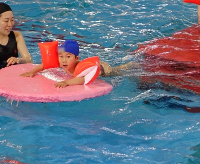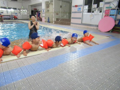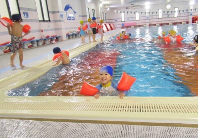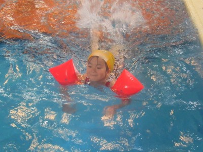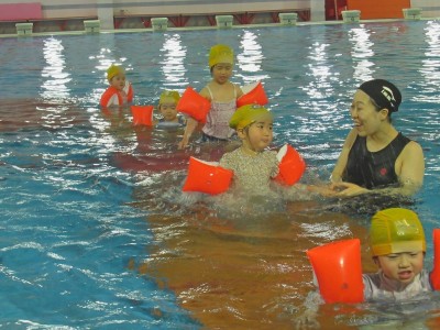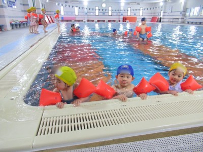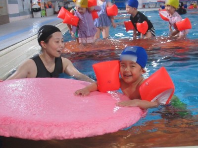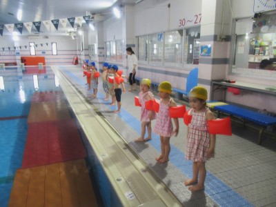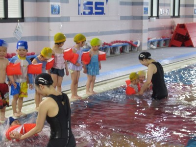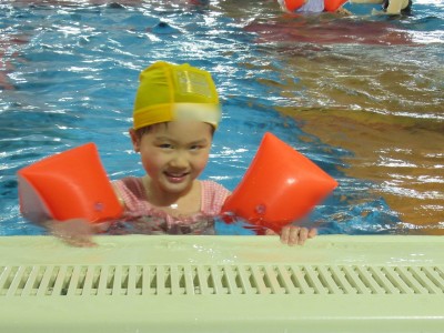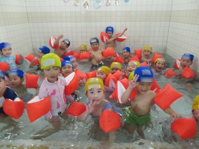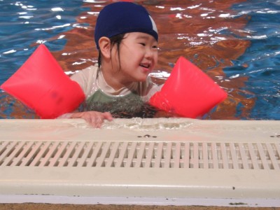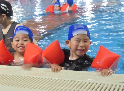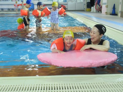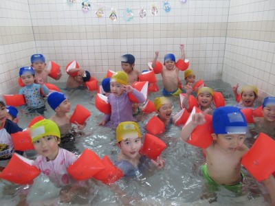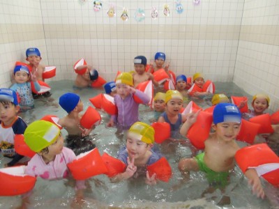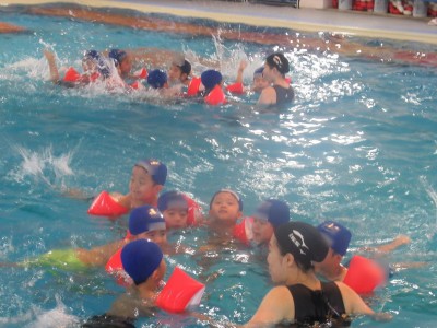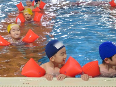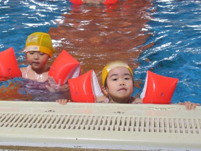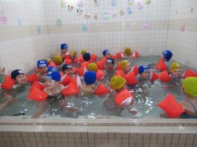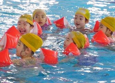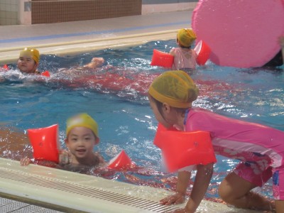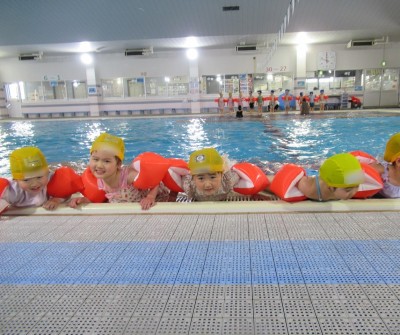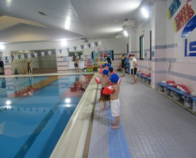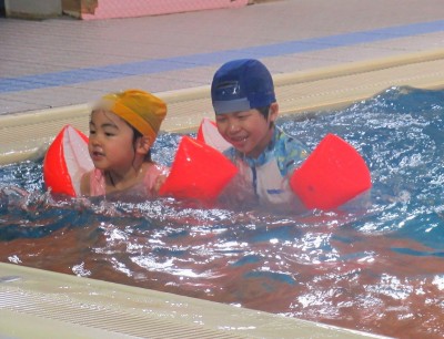 プ-ルに、子どもたちは