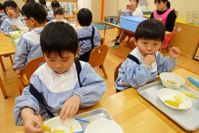 年中ばら組さんも給食