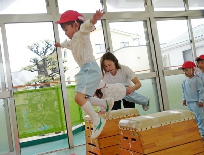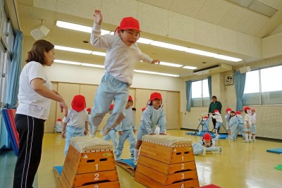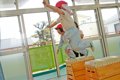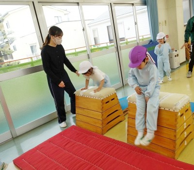 で、とび箱の上に跳