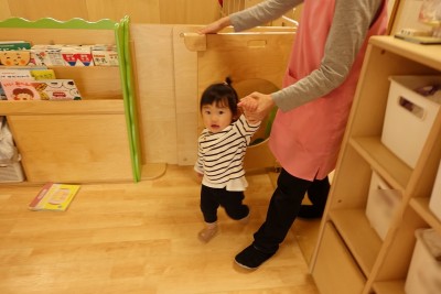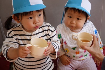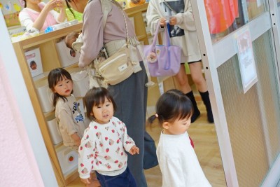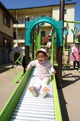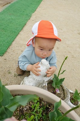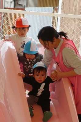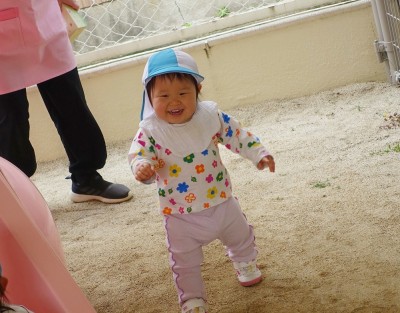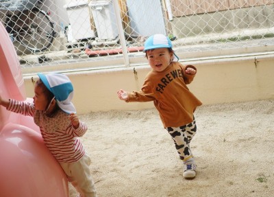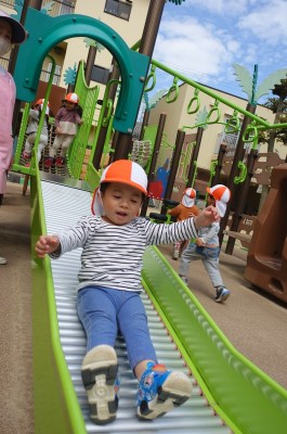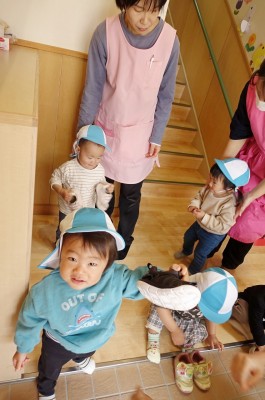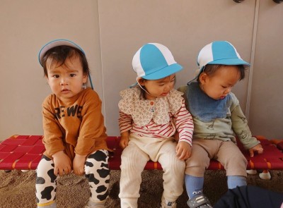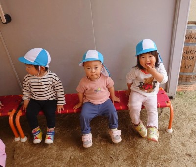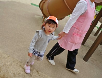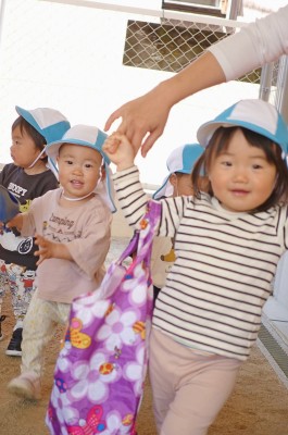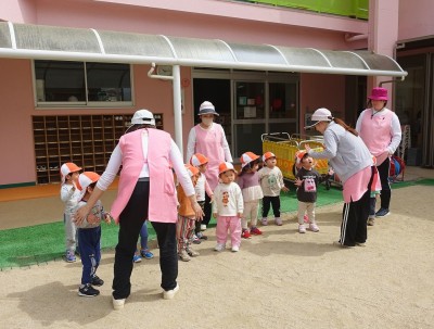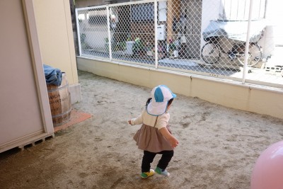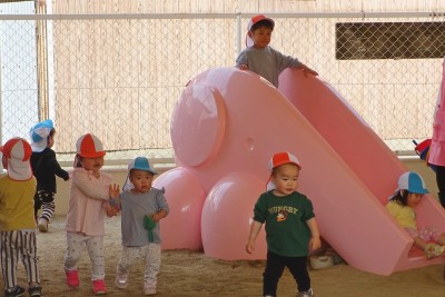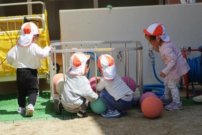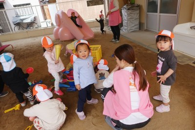 うさぎ組さんが園庭に出