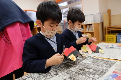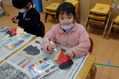 に向けて、鬼のお面制作