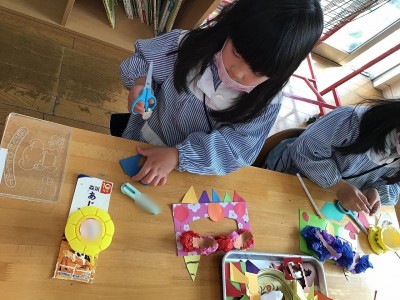 年長組さんもお面制作
