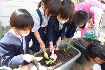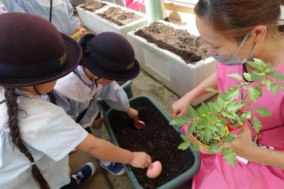 子どもたちや先生が手
