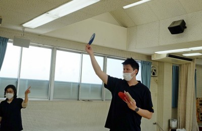 先生が星型のおもちゃを