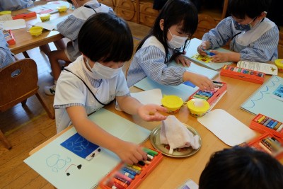画用紙にクレパスを