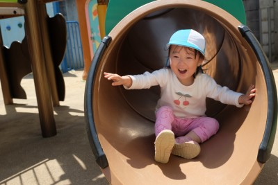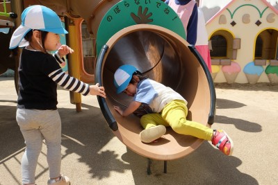 すべり台の中に☆