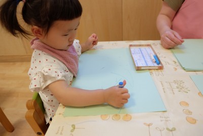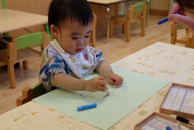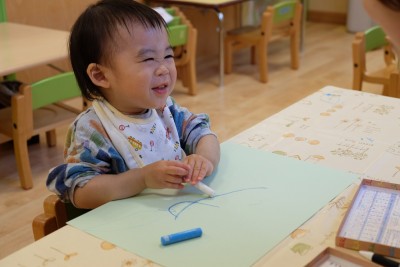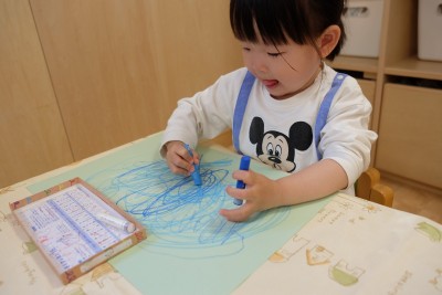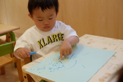 クレパスを手に、