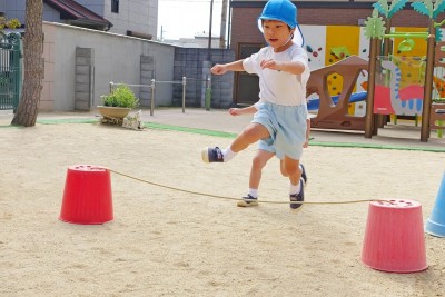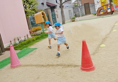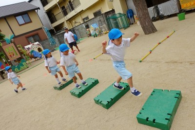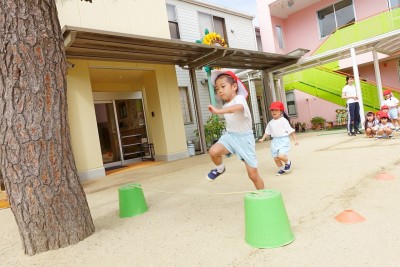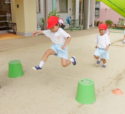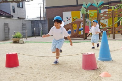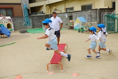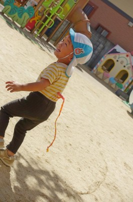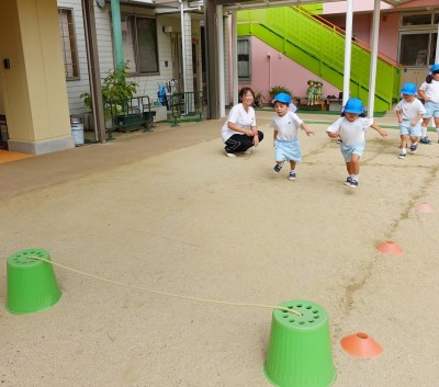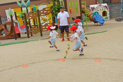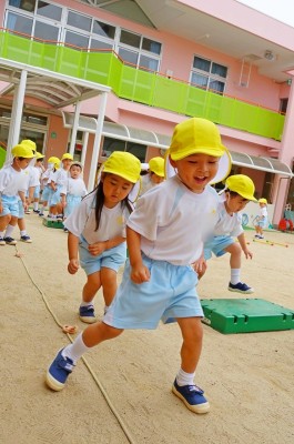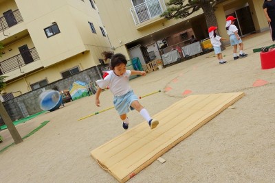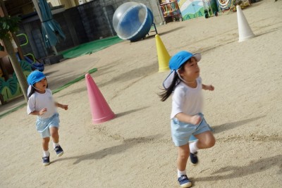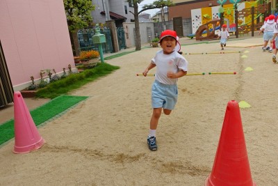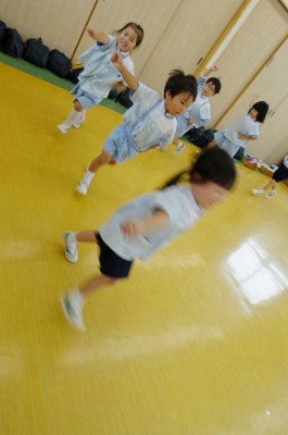 子どもたちの前を勢いよく