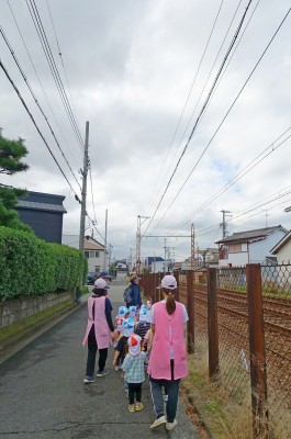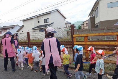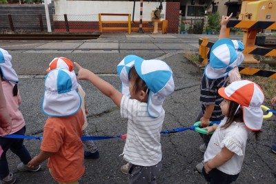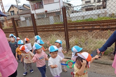 線路が見えて、子ども