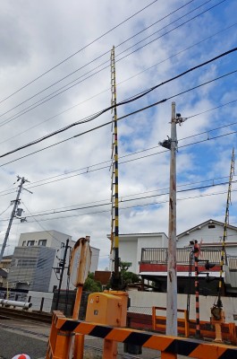 長い遮断機が下りて