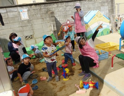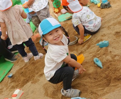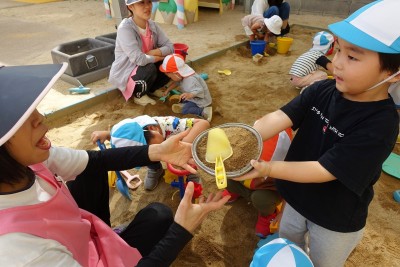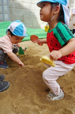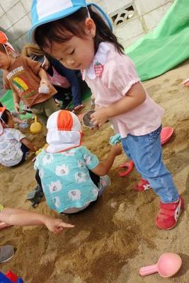 今日は、園庭のお砂場で