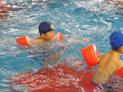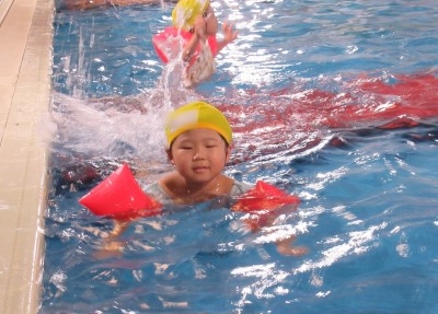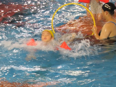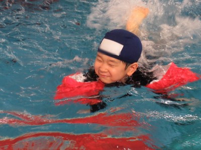 水の中で、ニコニコ